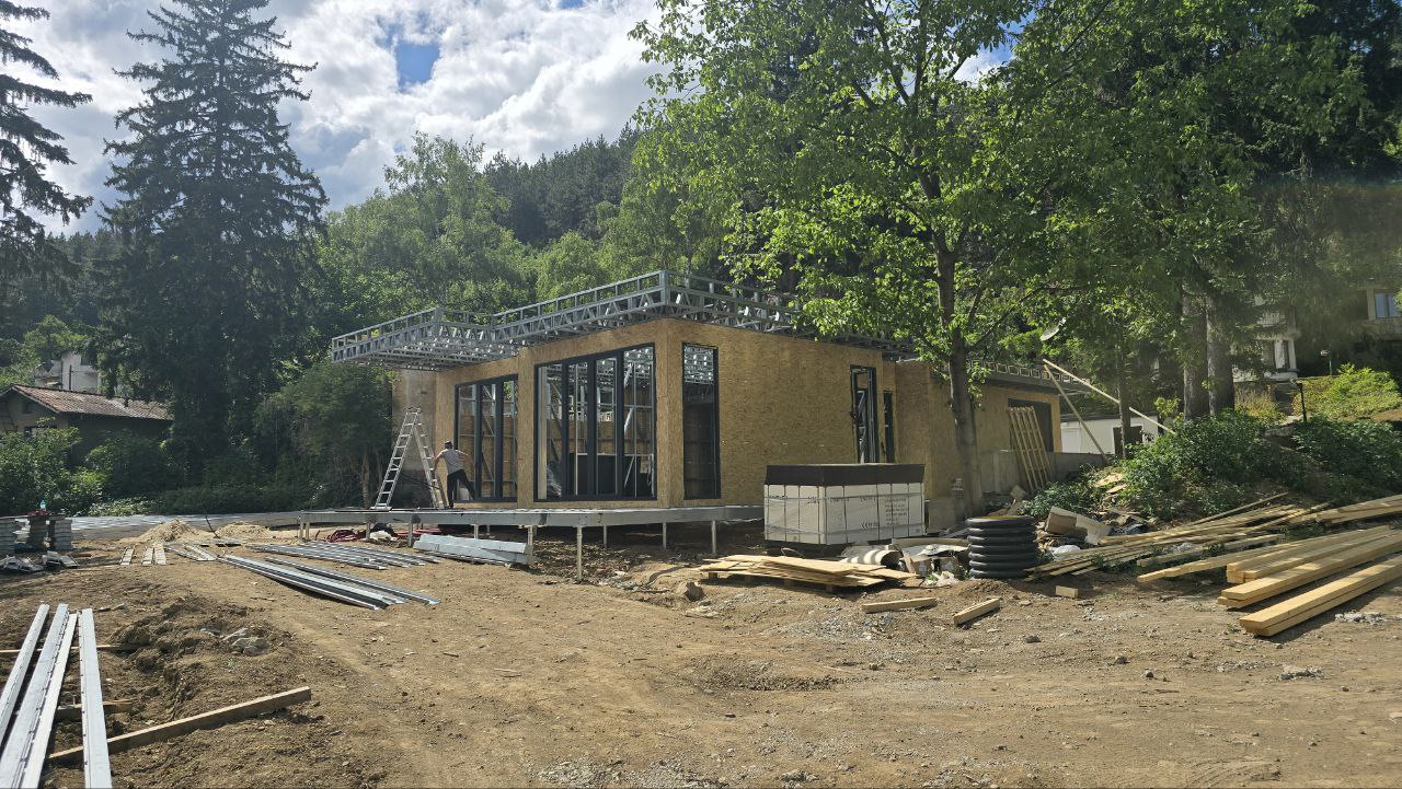 О проекте Современный одноэтажный дуплекс на легких стальных тонкостенных конструкциях (ЛСТК). Общая площадь застройки — 320 м² (около 160 м² на секцию). Рациональная планировка, энергоэффективная оболочка, быстрый монтаж.